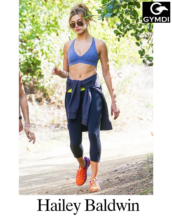 Khéo léo khoe vẻ đẹp hình thể của mình cùng với chiếc áo ngực thể thao và quần legging lửng. Bên ngoài là một chiếc áo khoác hờ quanh hông làm cho bộ đồ của Hailey Baldwin hoàn toàn không đơn điệu một chút nào.