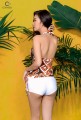Takini kết hợp với quần đùi, kiểu áo được cách điệu kín đáo, che khuyết điểm cho chị em