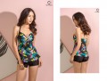 Bộ bơi liền mảnh quần đùi đen hoa xanh LM136